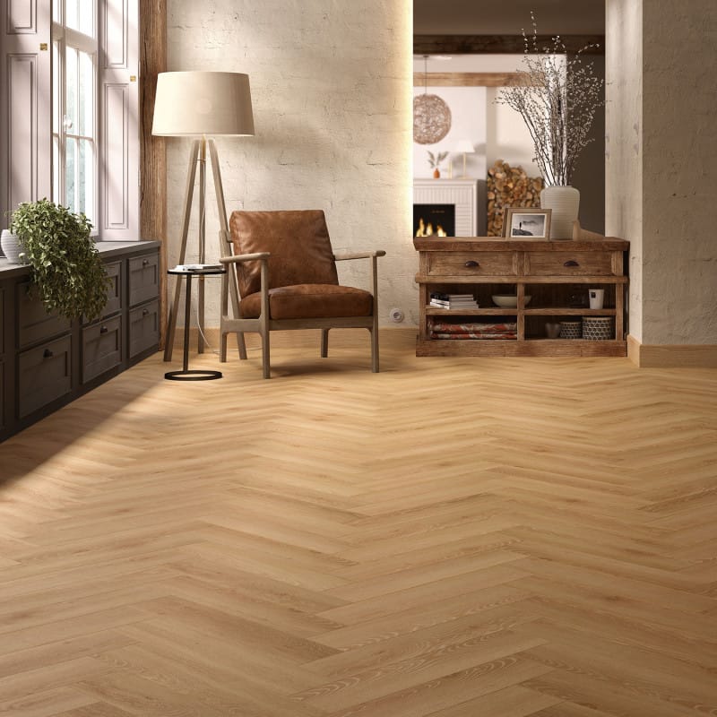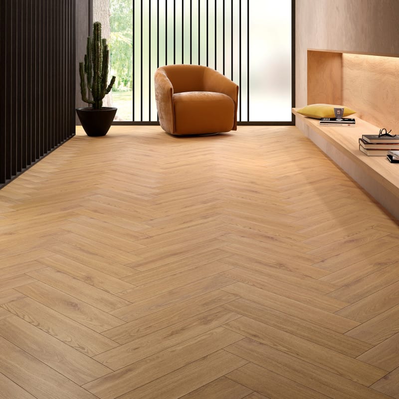 Le sol stratifié ALLURE bâton rompu réinterprète l’élégance intemporelle du parquet chevron dans une version moderne, robuste et facile à vivre. Grâce à ses lames spécifiques pour pose en bâton rompu, il structure visuellement l’espace et apporte immédiatement un rendu haut de gamme, aussi bien dans un intérieur classique que contemporain.