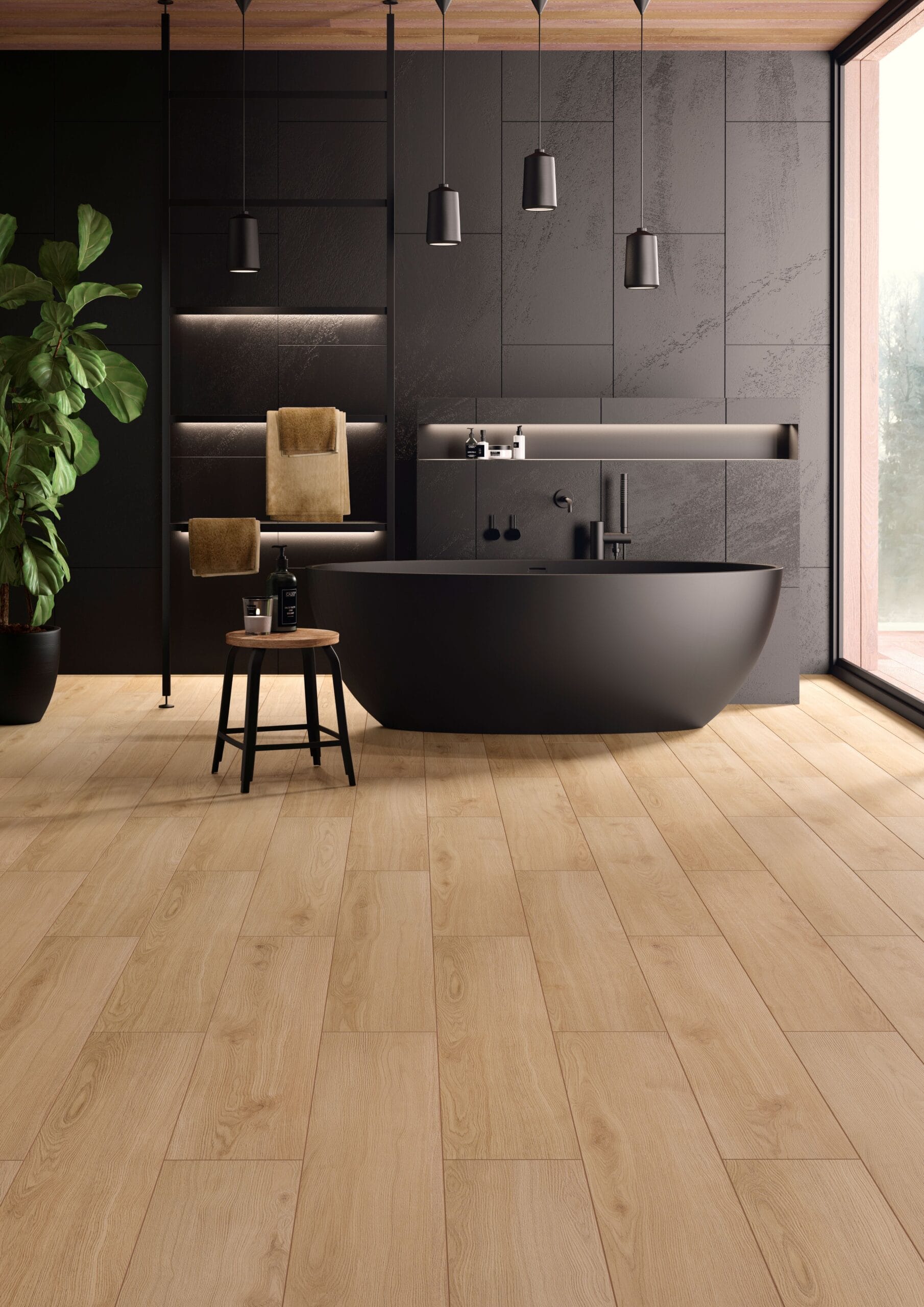 Disponible en plusieurs coloris chêne, du plus clair au plus soutenu, il permet de créer des ambiances variées :